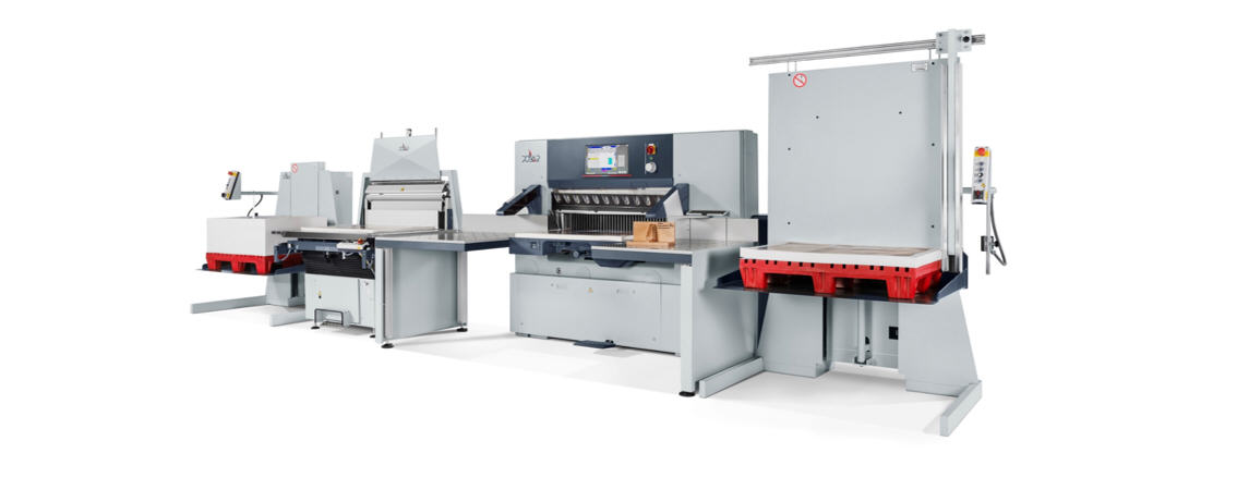 This system is typically used by companies working with at least two printing presses for medium-size format or larger, who wish to replace an existing cutting system. It is recommended for a capacity utilization of more than eight hours, jobs with at least six cutting reams to be processed, and an average number of a maximum eight cuts.