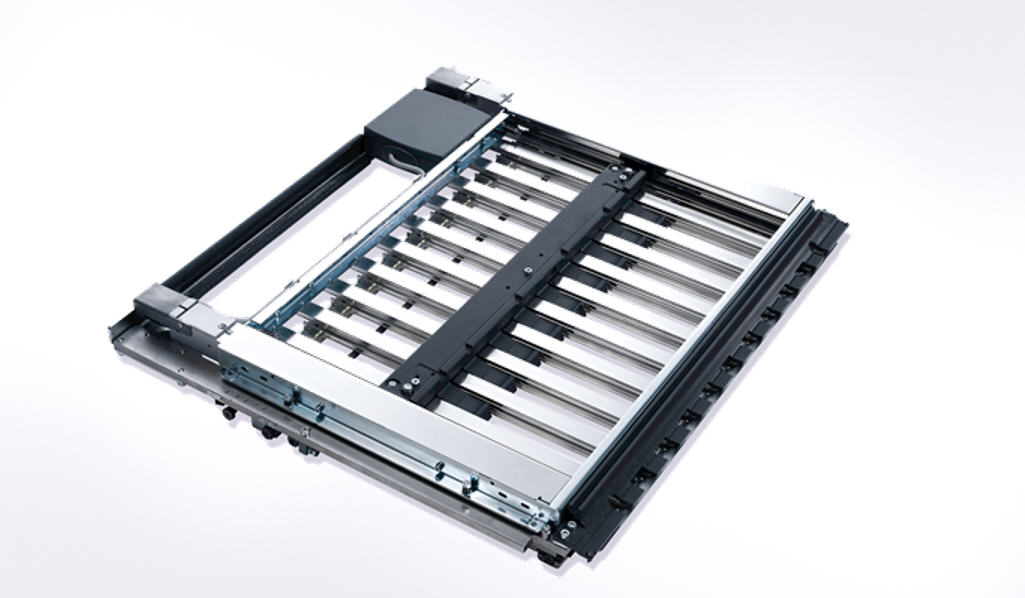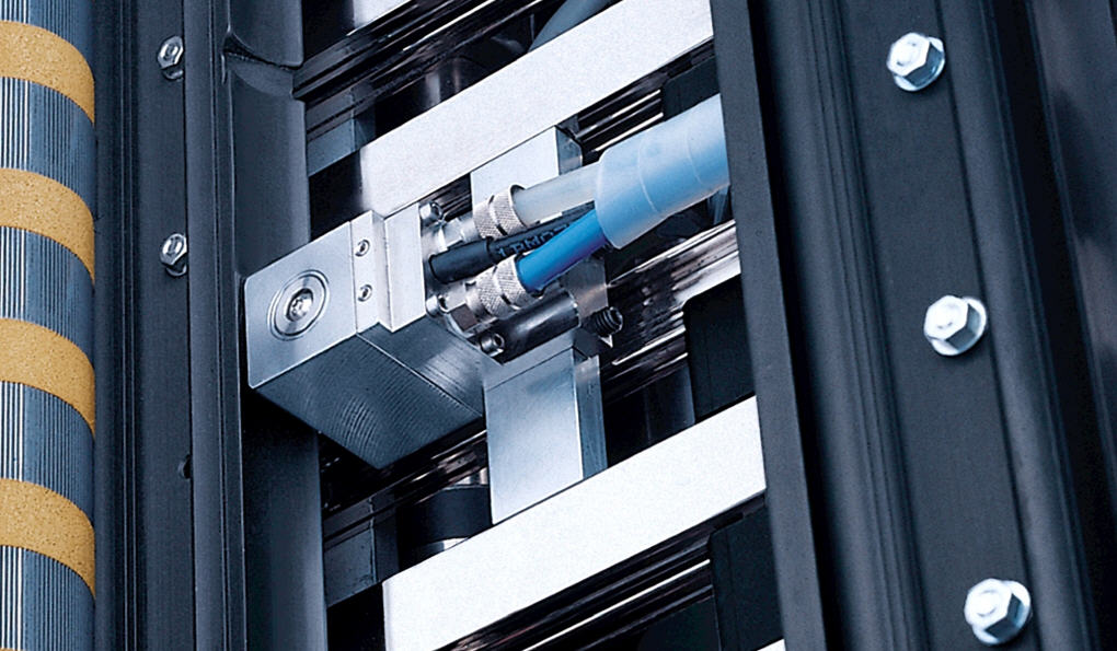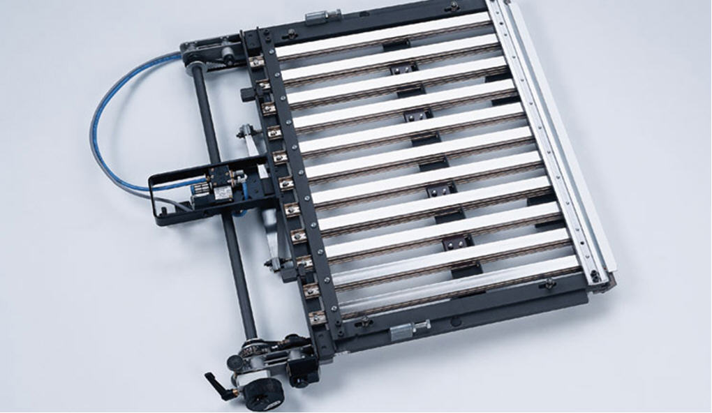 The pneumatic gatefold buckle plate is digitally controlled. The pneumatics open and close the deflector. The ACC 2.4 digital control module precisely controls the timing independently of the folding speed. Precise control of the deflector profile lets flaps be as close together as 0.5 to 1.0 millimeter (0.02 to 0.04 inch), depending on the paper thickness. High cycling rates (up to 15,000 cycles per hour) can be achieved effortlessly, even during continuous operation.