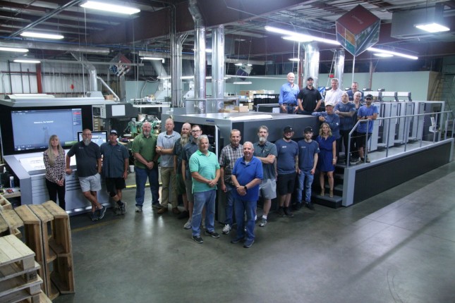 The longest Speedmaster CX 104 built to date runs across 17 units, producing premium packaging and specialty print jobs.